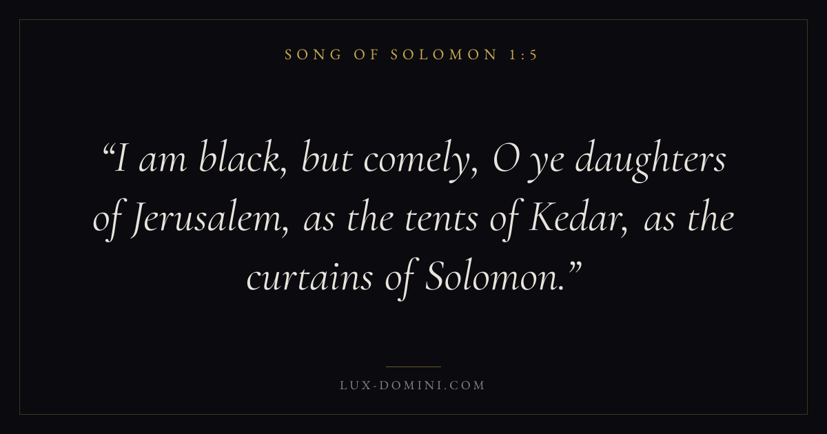 I am black, but comely, O ye daughters of Jerusalem, as the tents of Kedar, as the curtains of Solomon.