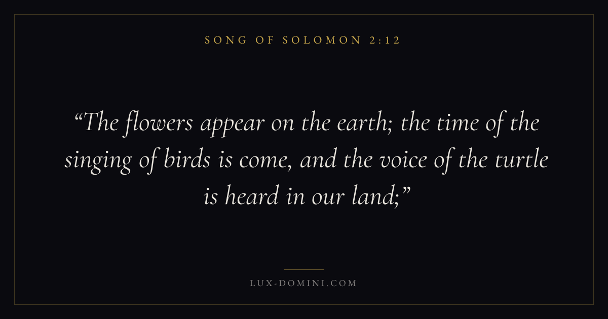 The flowers appear on the earth; the time of the singing of birds is come, and the voice of the turtle is heard in our land;