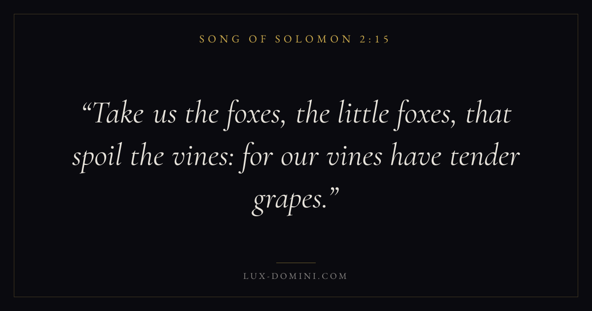Take us the foxes, the little foxes, that spoil the vines: for our vines have tender grapes.