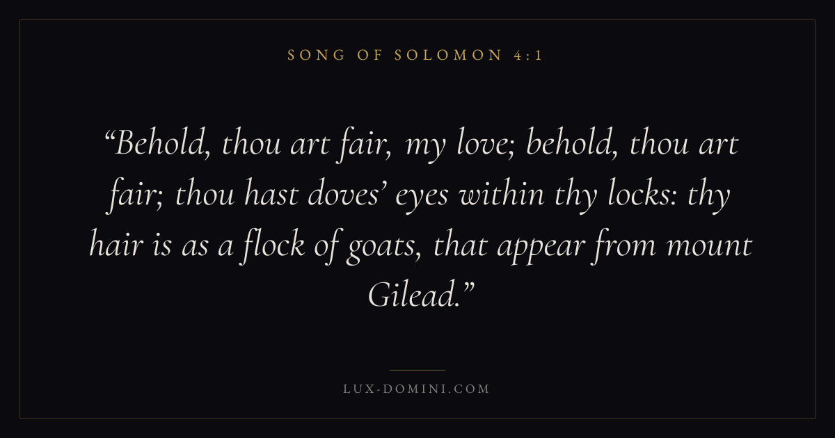 Behold, thou art fair, my love; behold, thou art fair; thou hast doves’ eyes within thy locks: thy hair is as a flock of goats, that appear from mount Gilead.