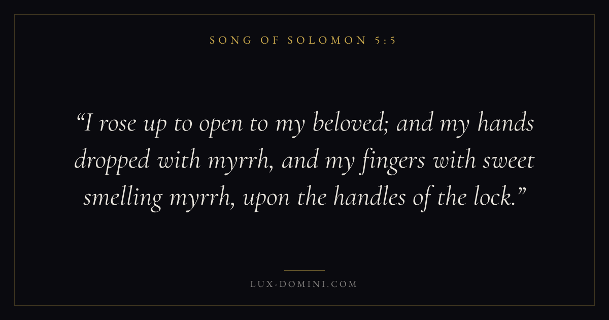 I rose up to open to my beloved; and my hands dropped with myrrh, and my fingers with sweet smelling myrrh, upon the handles of the lock.
