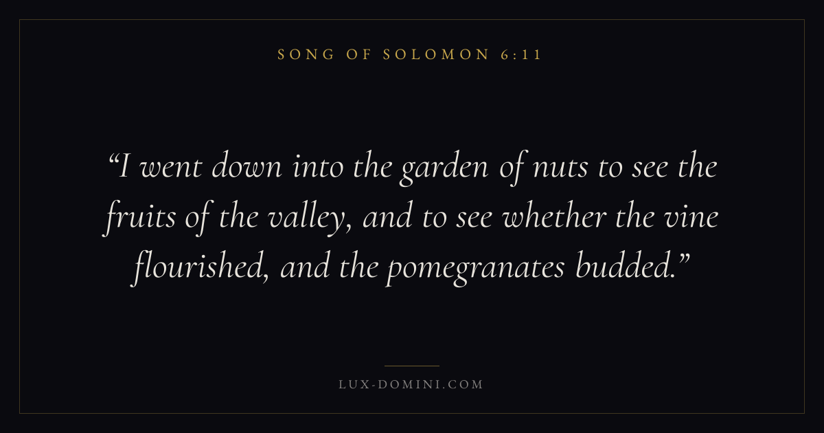 I went down into the garden of nuts to see the fruits of the valley, and to see whether the vine flourished, and the pomegranates budded.