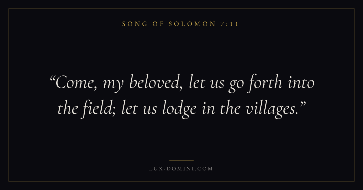 Come, my beloved, let us go forth into the field; let us lodge in the villages.