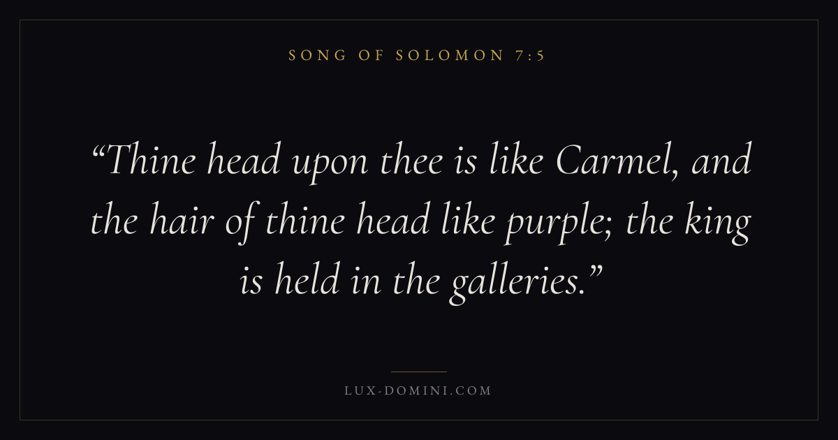 Thine head upon thee is like Carmel, and the hair of thine head like purple; the king is held in the galleries.