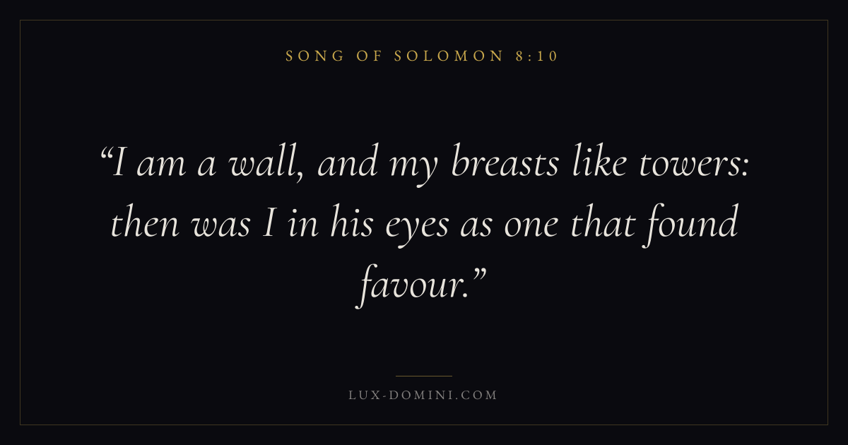 I am a wall, and my breasts like towers: then was I in his eyes as one that found favour.