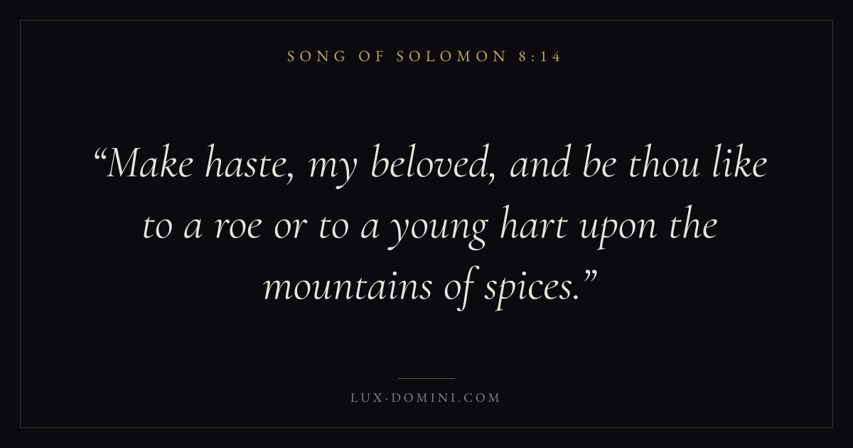 Make haste, my beloved, and be thou like to a roe or to a young hart upon the mountains of spices.