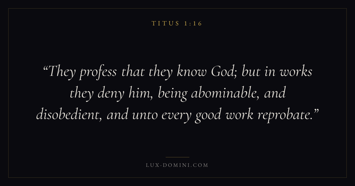 They profess that they know God; but in works they deny him, being abominable, and disobedient, and unto every good work reprobate.
