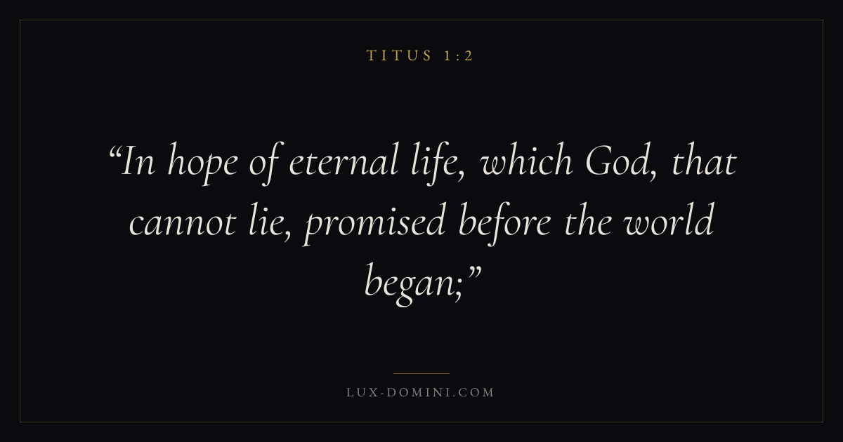 In hope of eternal life, which God, that cannot lie, promised before the world began;