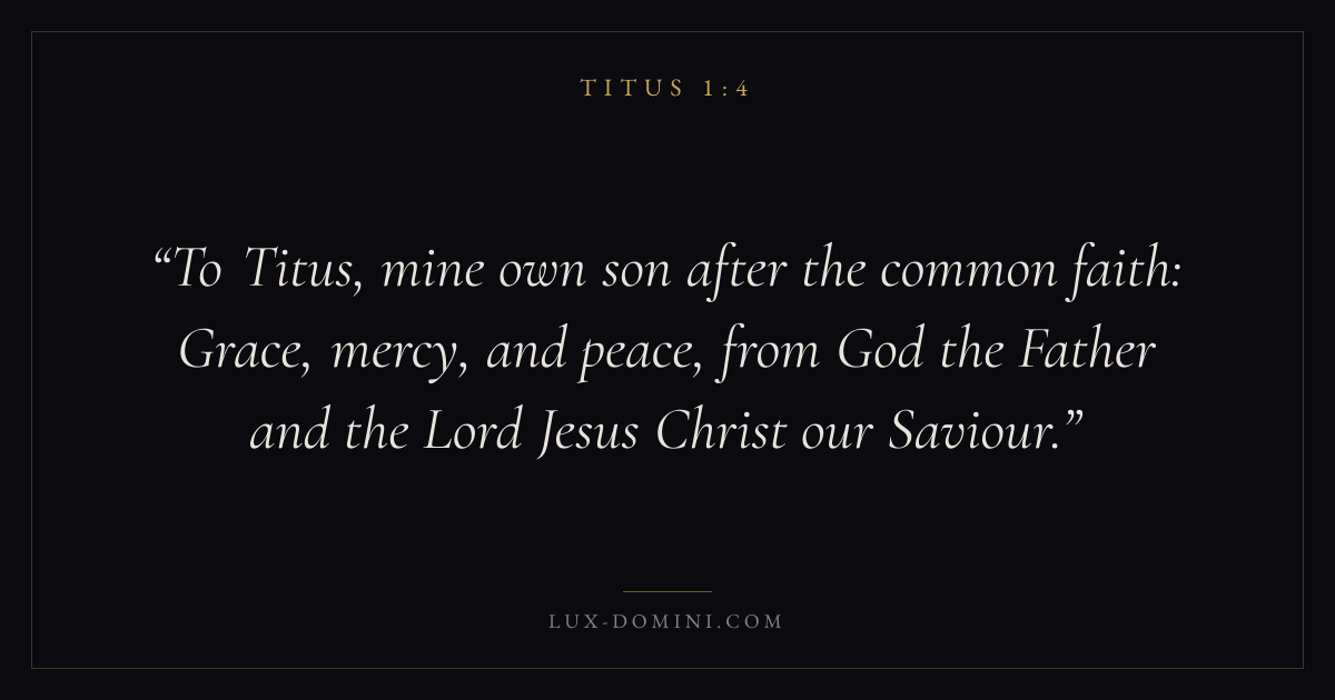 To Titus, mine own son after the common faith: Grace, mercy, and peace, from God the Father and the Lord Jesus Christ our Saviour.