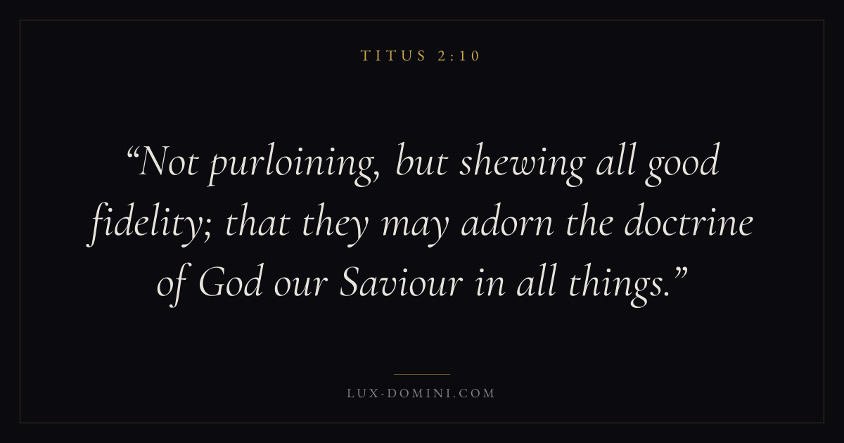 Not purloining, but shewing all good fidelity; that they may adorn the doctrine of God our Saviour in all things.
