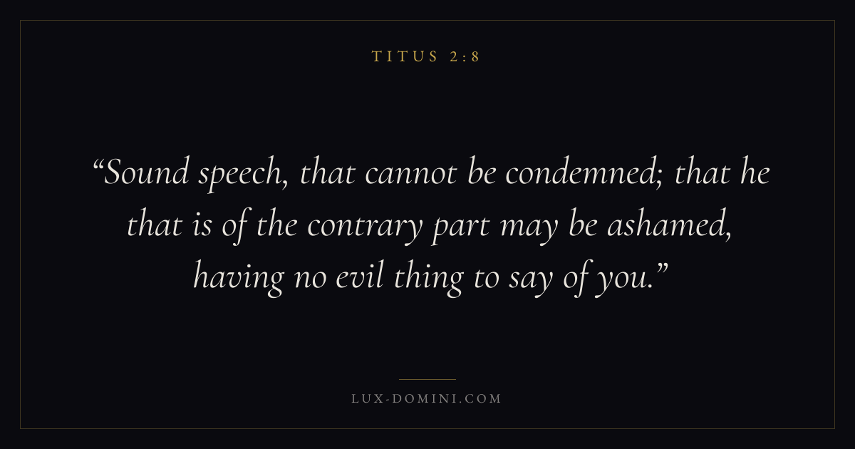 Sound speech, that cannot be condemned; that he that is of the contrary part may be ashamed, having no evil thing to say of you.