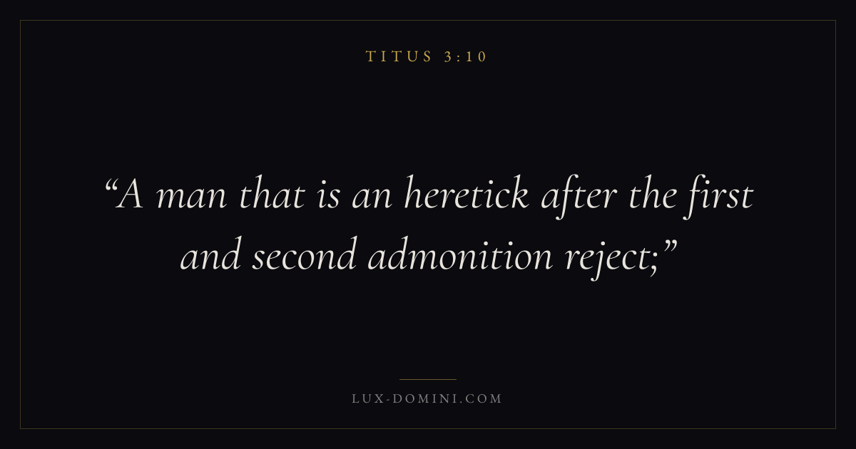 A man that is an heretick after the first and second admonition reject; A man that is an heretic - The word "heretic" is now commonly applied to one who holds some fundamental error of doctrine, "a person who holds and teaches opinions repugnant to the established faith, or that which is made the standard of orthodoxy." Webster. The Greek word here used αιρετικος hairetikos occurs nowhere else in the New Testament.