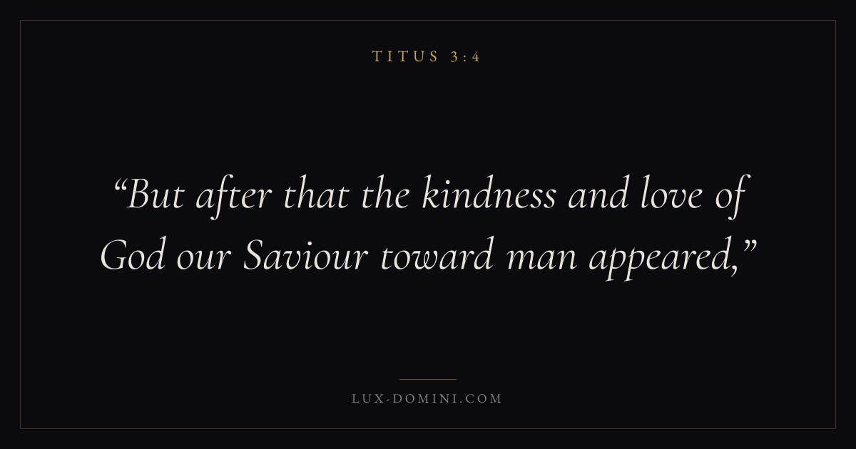 But after that the kindness and love of God our Saviour toward man appeared, But after that - Greek, when - οτε hote The meaning is, that "when the love of God was manifested in the plan of salvation, he saved us from this state God appeared" after we had sinned in this way, but that when his mercy was thus displayed we were converted from our sins, and made pure in his sight. The kindness - χρηστοτης chrestotes - "the goodness, or the benignity.