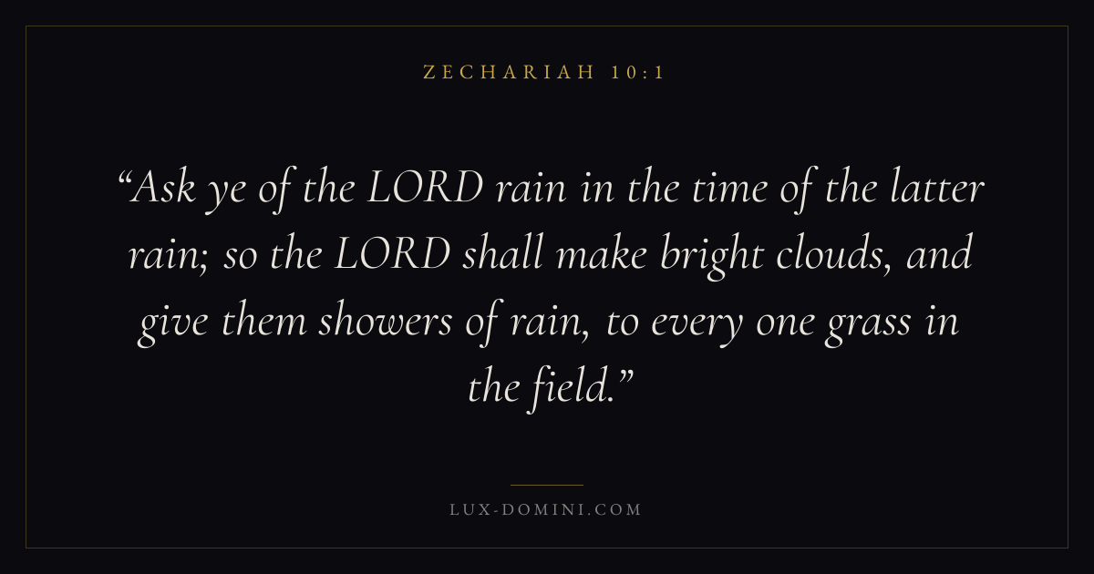 Ask ye of the LORD rain in the time of the latter rain; so the LORD shall make bright clouds, and give them showers of rain, to every one grass in the field.
