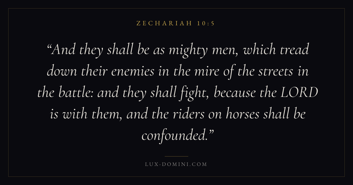 And they shall be as mighty men, which tread down their enemies in the mire of the streets in the battle: and they shall fight, because the LORD is with them, and the riders on horses shall be confounded.