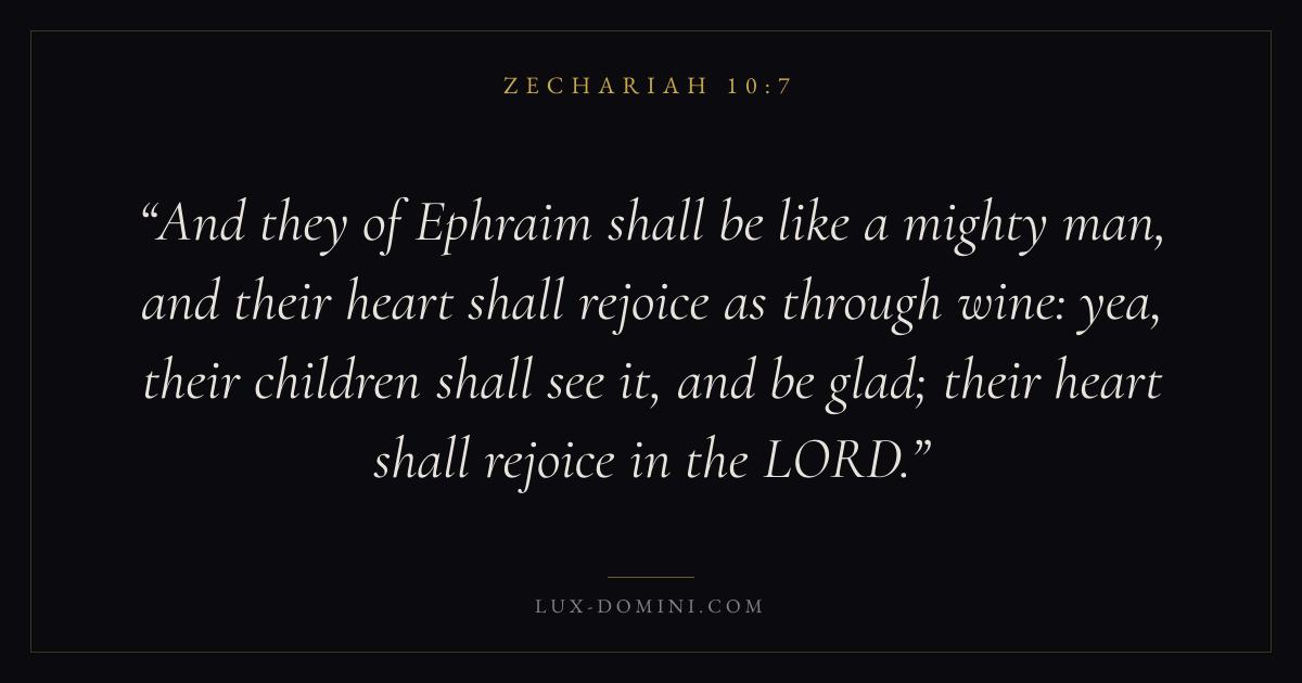 And they of Ephraim shall be like a mighty man, and their heart shall rejoice as through wine: yea, their children shall see it, and be glad; their heart shall rejoice in the LORD.