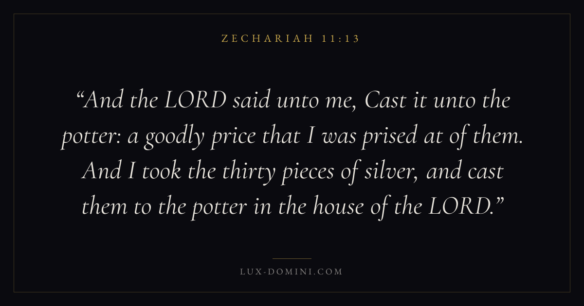 And the LORD said unto me, Cast it unto the potter: a goodly price that I was prised at of them. And I took the thirty pieces of silver, and cast them to the potter in the house of the LORD.