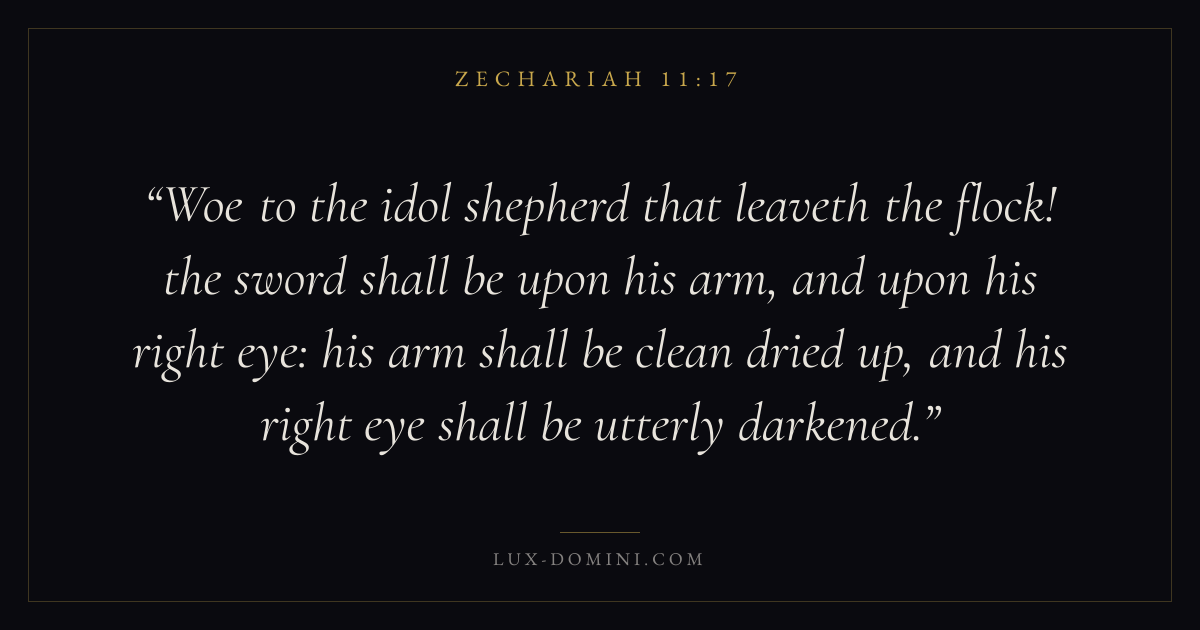 Woe to the idol shepherd that leaveth the flock! the sword shall be upon his arm, and upon his right eye: his arm shall be clean dried up, and his right eye shall be utterly darkened.
