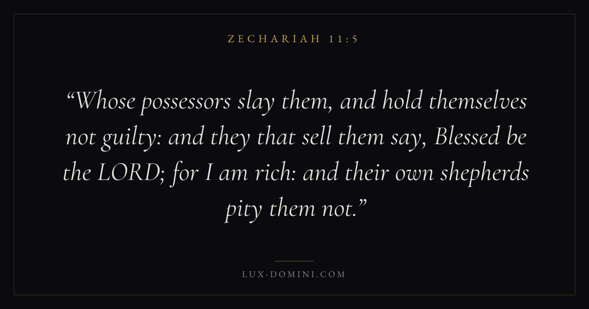 Whose possessors slay them, and hold themselves not guilty: and they that sell them say, Blessed be the LORD; for I am rich: and their own shepherds pity them not.