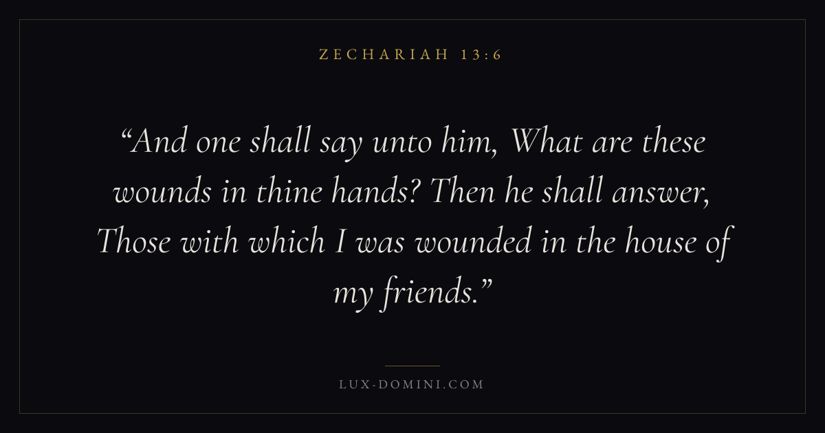And one shall say unto him, What are these wounds in thine hands? Then he shall answer, Those with which I was wounded in the house of my friends.