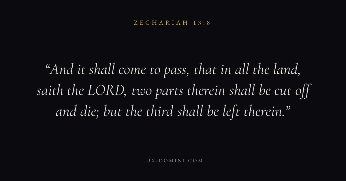 And it shall come to pass, that in all the land, saith the LORD, two parts therein shall be cut off and die; but the third shall be left therein.