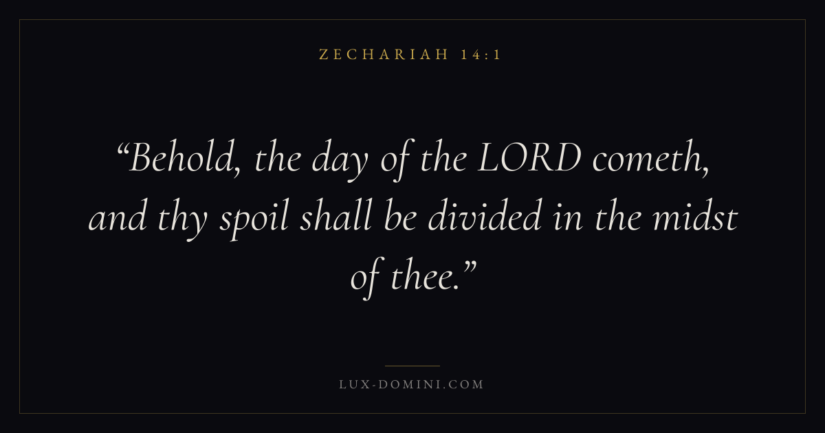 Behold, the day of the LORD cometh, and thy spoil shall be divided in the midst of thee.