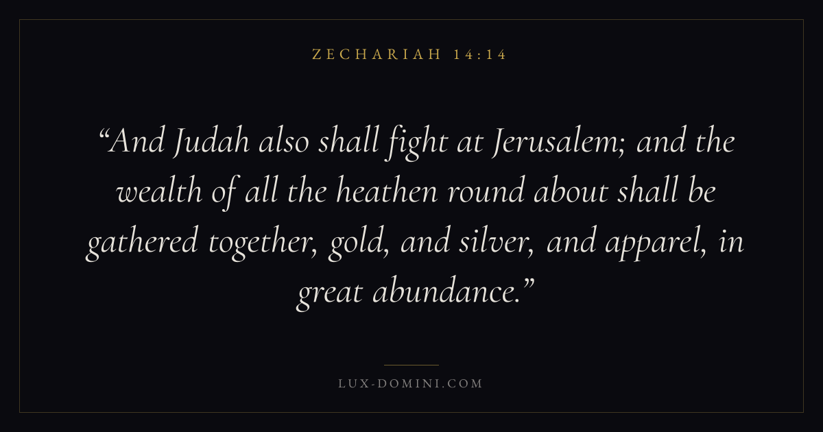 And Judah also shall fight at Jerusalem; and the wealth of all the heathen round about shall be gathered together, gold, and silver, and apparel, in great abundance.