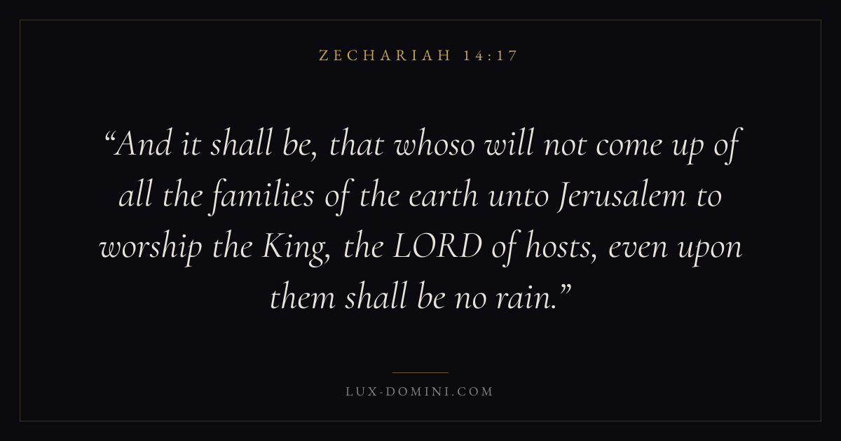 And it shall be, that whoso will not come up of all the families of the earth unto Jerusalem to worship the King, the LORD of hosts, even upon them shall be no rain.