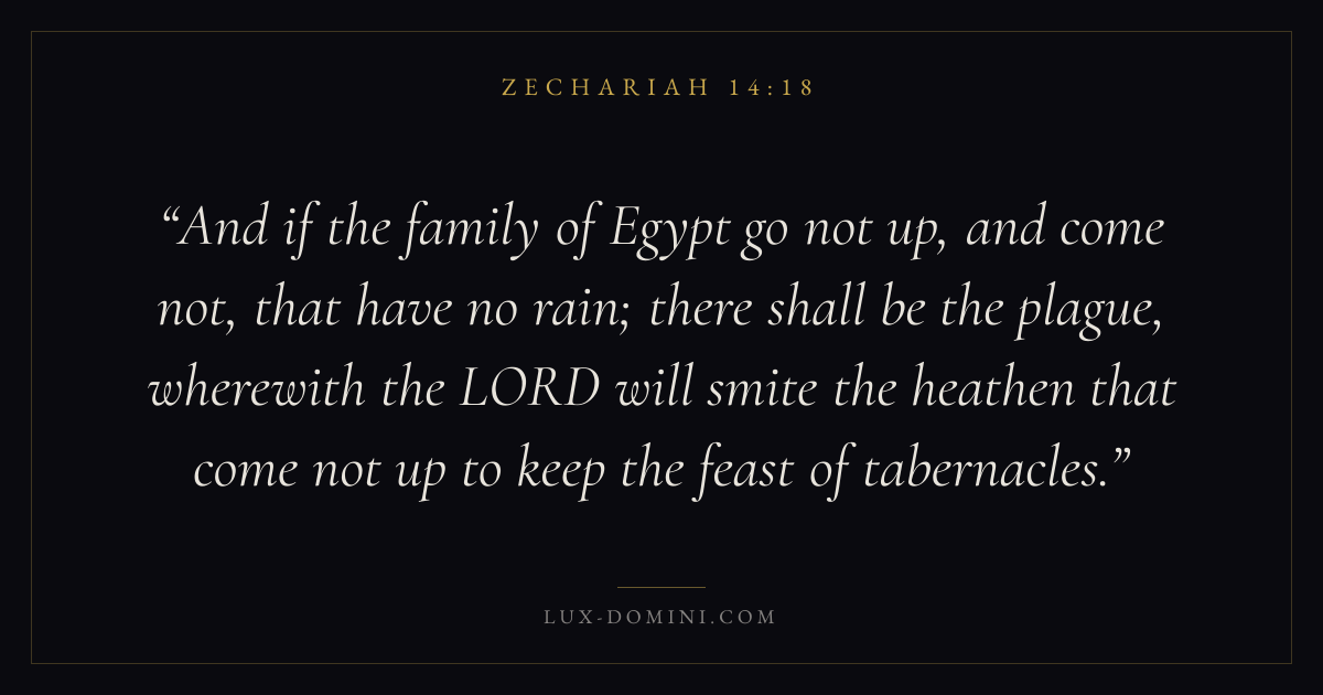 And if the family of Egypt go not up, and come not, that have no rain; there shall be the plague, wherewith the LORD will smite the heathen that come not up to keep the feast of tabernacles.
