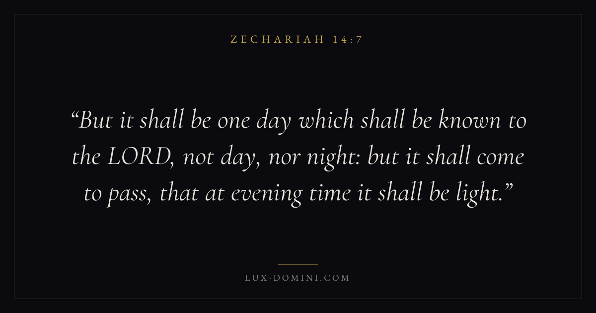 But it shall be one day which shall be known to the LORD, not day, nor night: but it shall come to pass, that at evening time it shall be light.