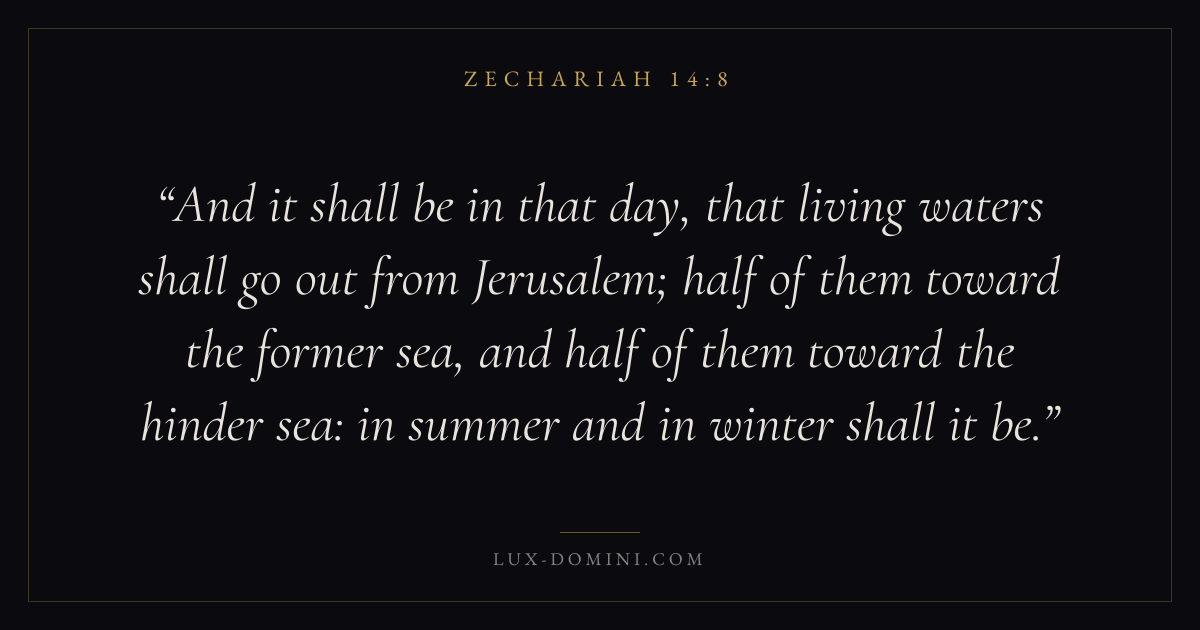 And it shall be in that day, that living waters shall go out from Jerusalem; half of them toward the former sea, and half of them toward the hinder sea: in summer and in winter shall it be.