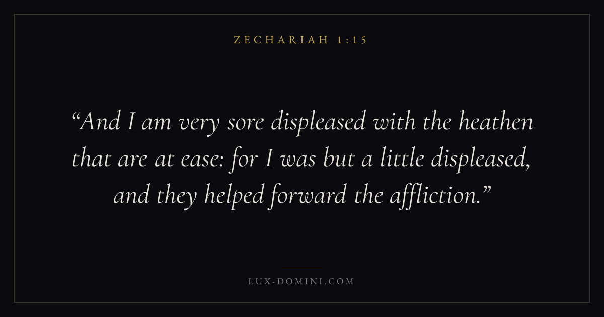 And I am very sore displeased with the heathen that are at ease: for I was but a little displeased, and they helped forward the affliction.