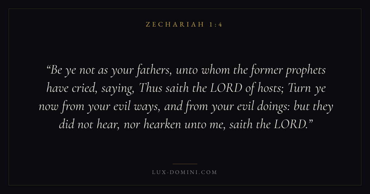 Be ye not as your fathers, unto whom the former prophets have cried, saying, Thus saith the LORD of hosts; Turn ye now from your evil ways, and from your evil doings: but they did not hear, nor hearken unto me, saith the LORD.