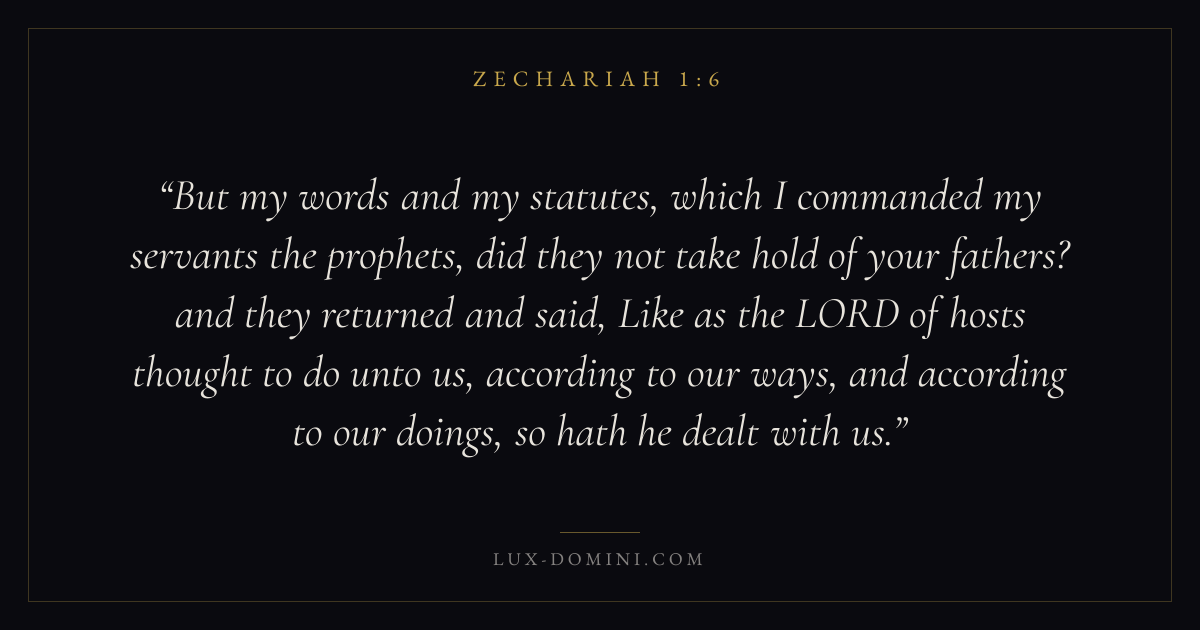 But my words and my statutes, which I commanded my servants the prophets, did they not take hold of your fathers? and they returned and said, Like as the LORD of hosts thought to do unto us, according to our ways, and according to our doings, so hath he dealt with us.