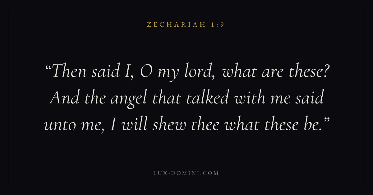 Then said I, O my lord, what are these? And the angel that talked with me said unto me, I will shew thee what these be.