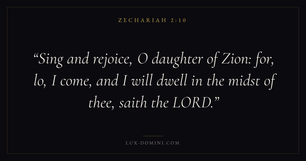 Sing and rejoice, O daughter of Zion: for, lo, I come, and I will dwell in the midst of thee, saith the LORD.