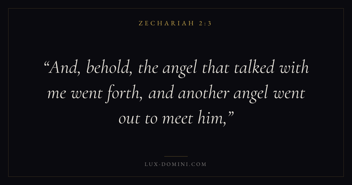 And, behold, the angel that talked with me went forth, and another angel went out to meet him,