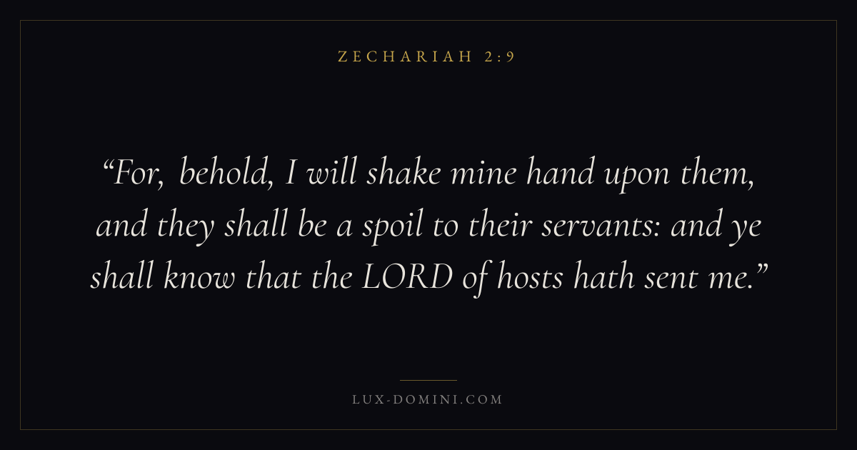 For, behold, I will shake mine hand upon them, and they shall be a spoil to their servants: and ye shall know that the LORD of hosts hath sent me.