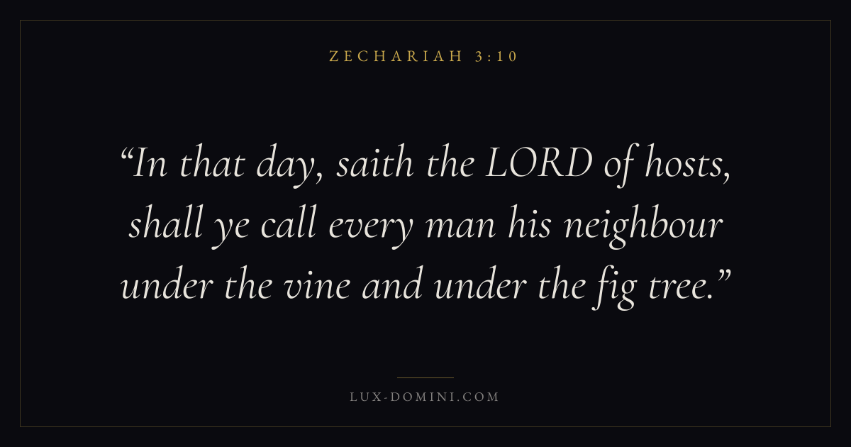 In that day, saith the LORD of hosts, shall ye call every man his neighbour under the vine and under the fig tree.