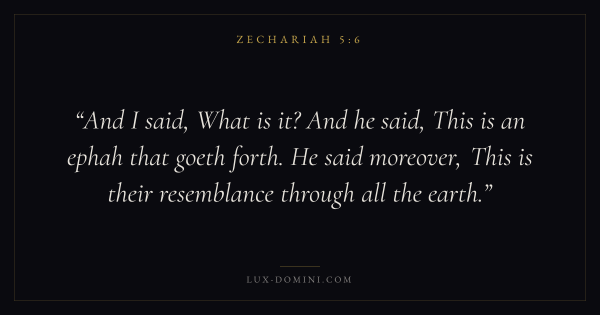 And I said, What is it? And he said, This is an ephah that goeth forth. He said moreover, This is their resemblance through all the earth.