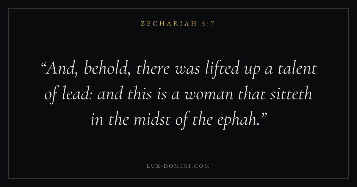 And, behold, there was lifted up a talent of lead: and this is a woman that sitteth in the midst of the ephah.