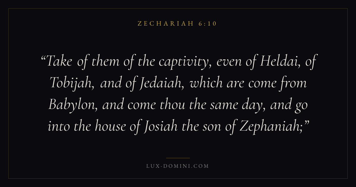 Take of them of the captivity, even of Heldai, of Tobijah, and of Jedaiah, which are come from Babylon, and come thou the same day, and go into the house of Josiah the son of Zephaniah;