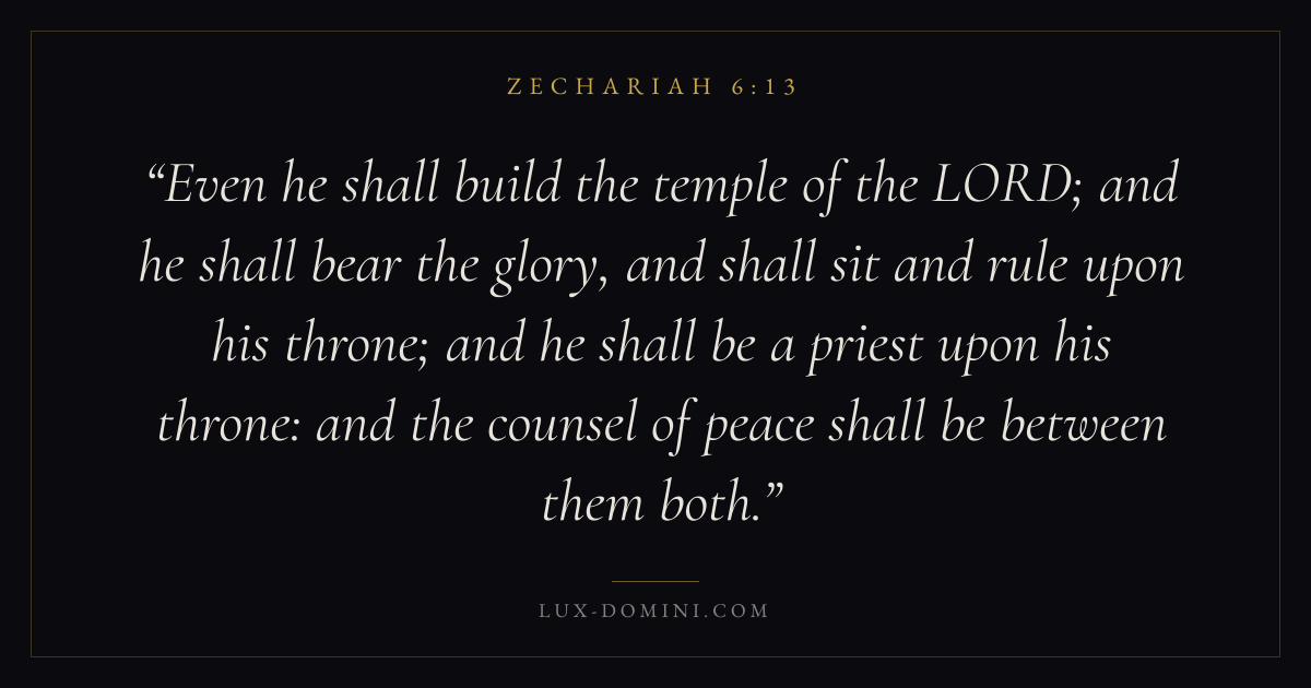 Even he shall build the temple of the LORD; and he shall bear the glory, and shall sit and rule upon his throne; and he shall be a priest upon his throne: and the counsel of peace shall be between them both.