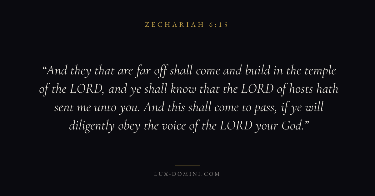 And they that are far off shall come and build in the temple of the LORD, and ye shall know that the LORD of hosts hath sent me unto you. And this shall come to pass, if ye will diligently obey the voice of the LORD your God.