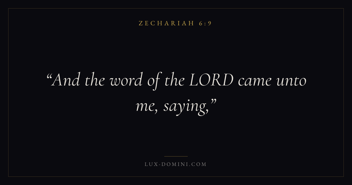 Books / Zechariah / Chapter 6 / Verse 9 ← Zechariah 6:8 Zechariah 6:9 Zechariah 6:10 → And the word of the LORD came unto me, saying, Download verse card Share on Twitter Share on Facebook Pin it ✦ Key themes TruthReturnTempleMessiah Read with Zechariah 6:10Zechariah 6:11John 14:6John 8:32 Related topics Bible verses about truth ✦ Zechariah Chapter 6 verses V. 1 V. 2 V. 3 V. 4 V. 5 V. 6 V. 7 V. 8 V. 9 V. 10 V. 11 V. 12 V. 13 V. 14 V. 15