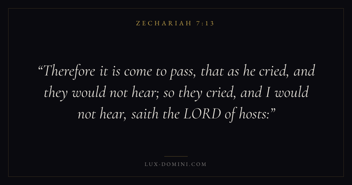 Therefore it is come to pass, that as he cried, and they would not hear; so they cried, and I would not hear, saith the LORD of hosts:
