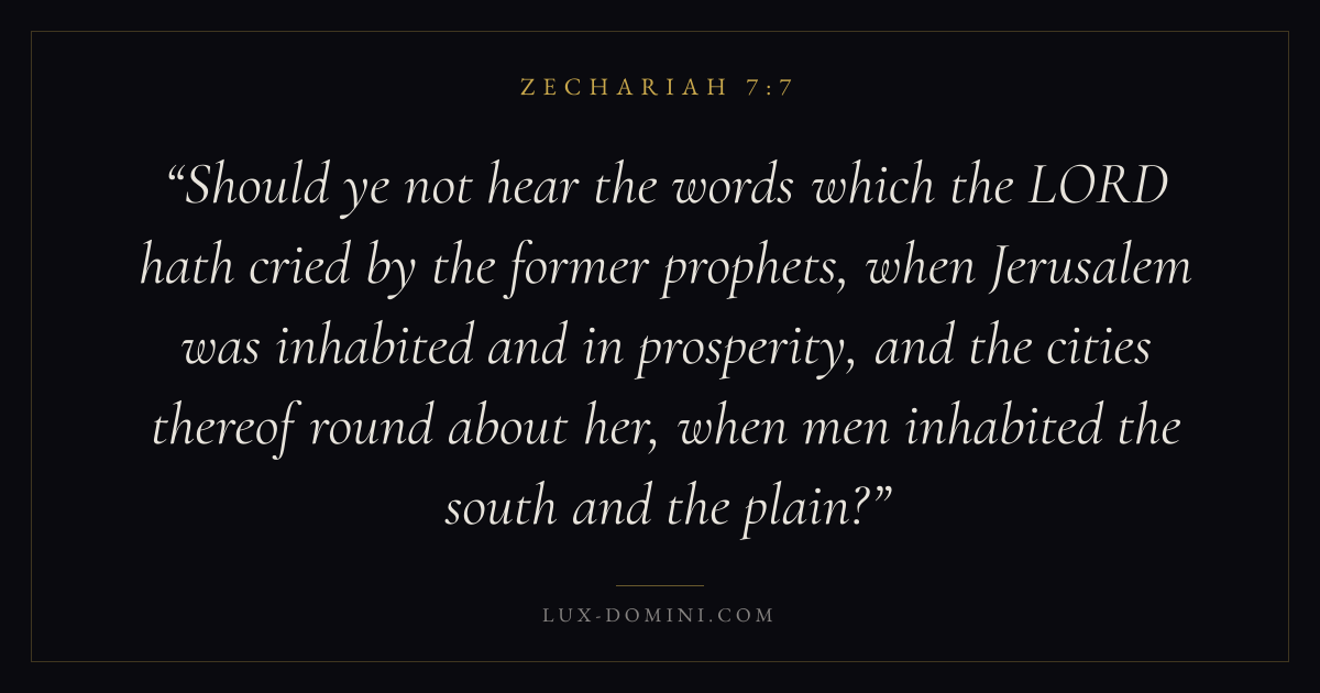 Should ye not hear the words which the LORD hath cried by the former prophets, when Jerusalem was inhabited and in prosperity, and the cities thereof round about her, when men inhabited the south and the plain?