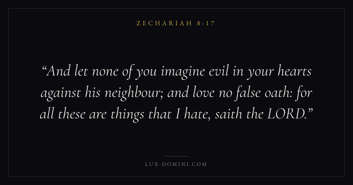 And let none of you imagine evil in your hearts against his neighbour; and love no false oath: for all these are things that I hate, saith the LORD.