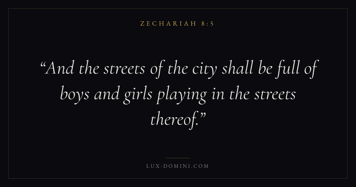 And the streets of the city shall be full of boys and girls playing in the streets thereof.