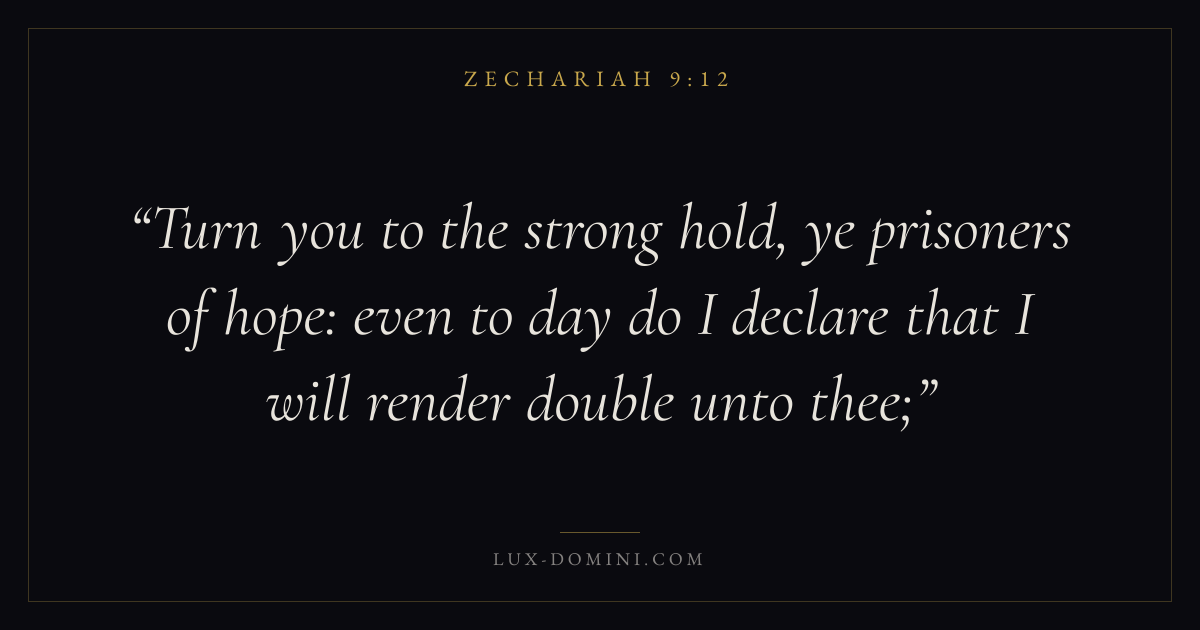 Turn you to the strong hold, ye prisoners of hope: even to day do I declare that I will render double unto thee;